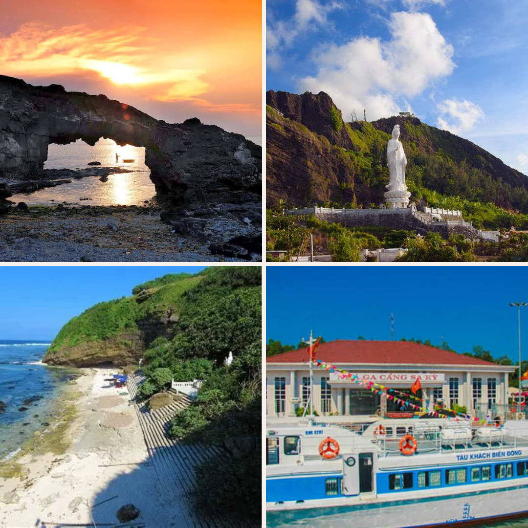- Cổng Tò Vò: là một vòm đá tự nhiên kỳ vĩ được hình thành từ nham thạch núi lửa cổ xưa. Qua hàng nghìn năm chịu tác động của sóng biển và gió mưa, lớp nham thạch đã nguội lạnh và đông cứng lại, tạo nên cấu trúc đá độc đáo, vững chắc và hiếm có trên đảo Lý Sơn. Không chỉ là một điểm check-in hấp dẫn với hình dáng cong mềm mại nổi bật giữa biển trời, Cổng Tò Vò còn là nơi lý tưởng để du khách tận hưởng khoảnh khắc hoàng hôn tuyệt đẹp.