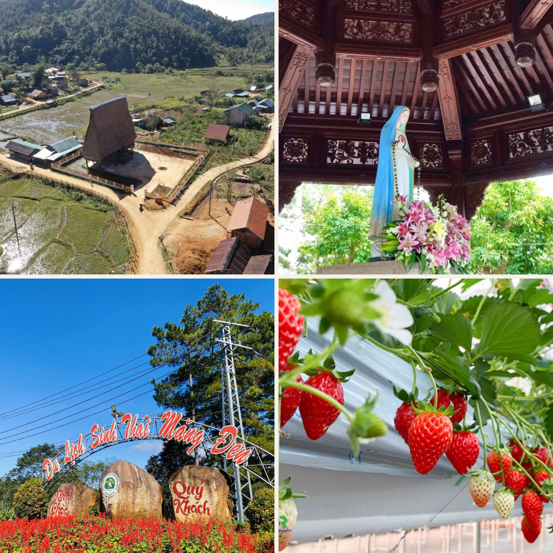 - Khu vườn nông nghiệp công nghệ cao là điểm dừng chân độc đáo dành cho những ai yêu thích sự tươi xanh của thiên nhiên và quan tâm đến xu hướng nông nghiệp bền vững. Giữa khí hậu trong lành và se lạnh đặc trưng của Măng Đen, nơi đây nổi bật với mô hình canh tác hiện đại theo tiêu chuẩn VietGAP, mang đến những sản phẩm sạch và an toàn. Quý khách sẽ được tận mắt chứng kiến quy trình trồng trọt khép kín, tìm hiểu về kỹ thuật chăm sóc rau củ quả như cà chua bi, xà lách, dâu tây… và đặc biệt là trải nghiệm thú vị khi tự tay hái dâu ngay tại vườn