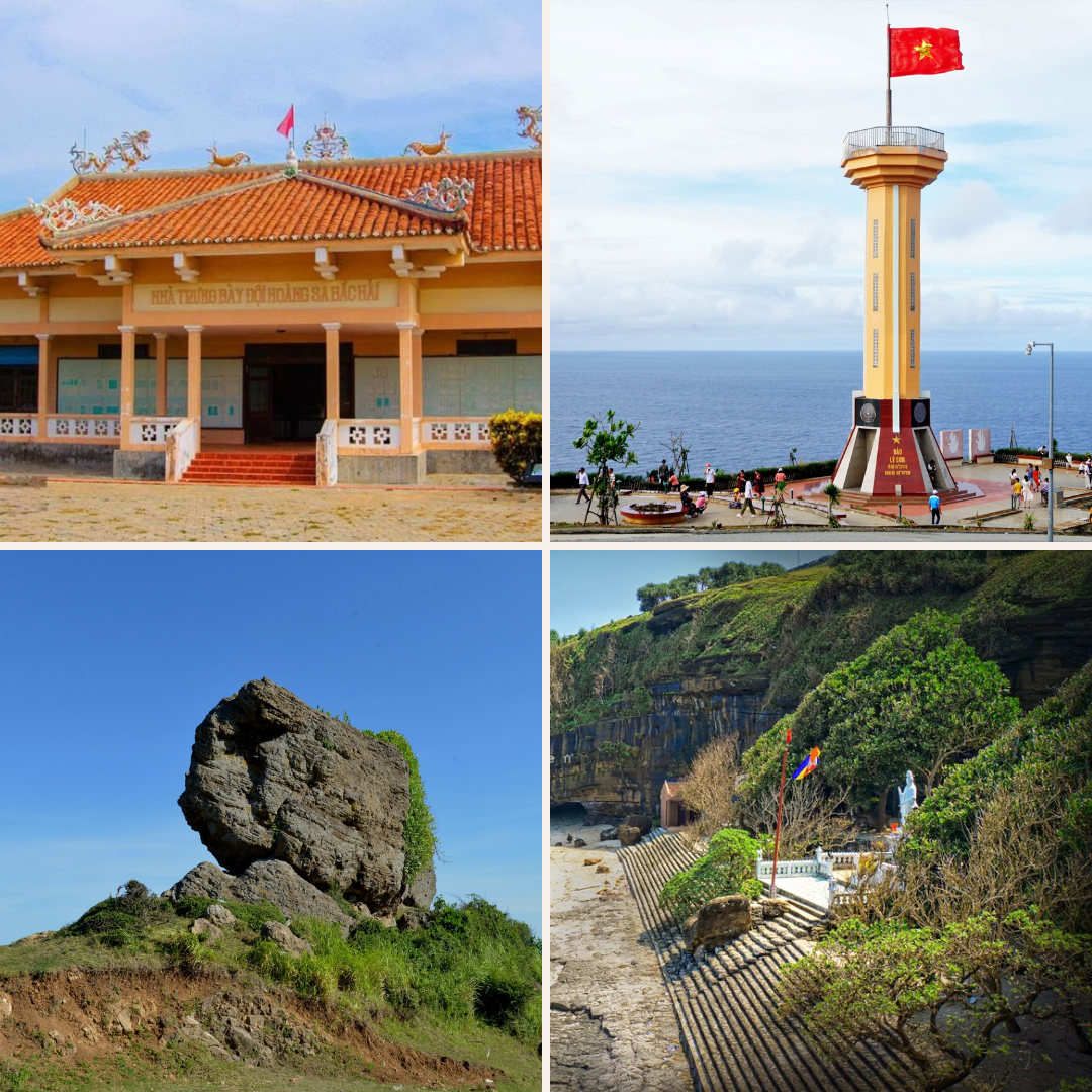 - Cột cờ Tổ quốc đảo Lý Sơn: là biểu tượng thiêng liêng giữa biển trời Tổ quốc, khẳng định chủ quyền bất biến nơi vùng biển đảo tiền tiêu. Lá cờ đỏ sao vàng tung bay rực rỡ trên nền trời lộng gió không chỉ là hình ảnh đầy kiêu hãnh, mà còn là lời nhắc nhở mạnh mẽ về tinh thần bất khuất của dân tộc Việt Nam. Từ chân cột cờ, nhìn ra khơi xa, du khách không chỉ được chiêm ngưỡng vẻ đẹp bao la của biển đảo mà còn cảm nhận sâu sắc niềm tự hào dân tộc và trách nhiệm gìn giữ chủ quyền thiêng liêng của đất nước.